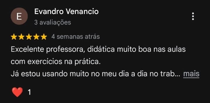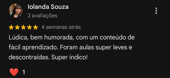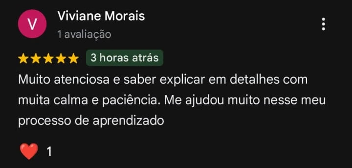 Apenas um aluno por aula. Você terá todo o suporte necessário para aprender de verdade!
